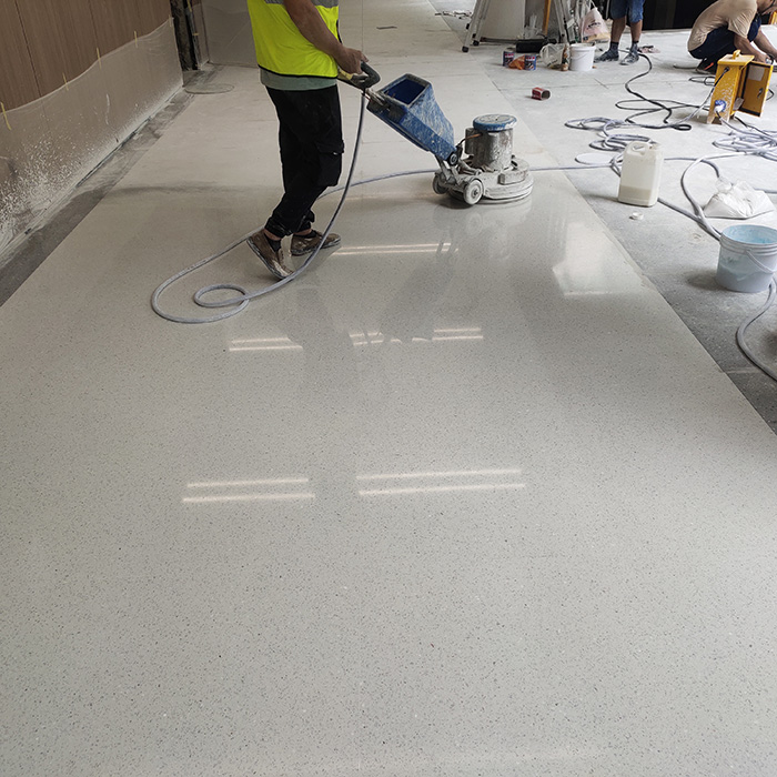 主用于無機材料地板,地板無須太光亮,300目以下較好,清理吸塵干凈地板,如果地板有蠟必須起蠟,有油污必須除油污,并晾干地板,趕工要大功率風筒吹干。